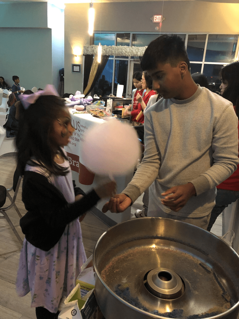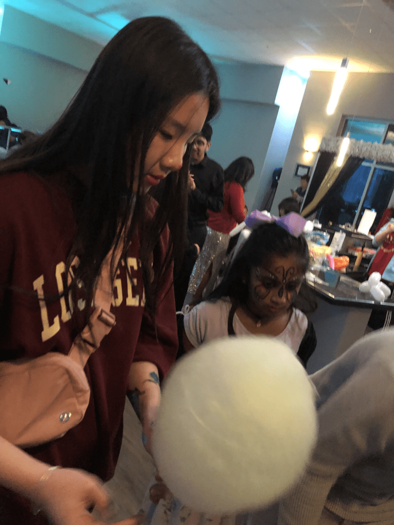 AYLUS Frisco & Plano received an order from a local Indian community group that they needed cotton candy, balloon art, and face painting service at their New Year Bash party on December 31, 2023. First, many young artists among our members gathered together at Frisco Library to learn how to make face paint on December 28, 2023. We learned three types of face paint for boys and many for girls: butterfly, rainbow, butterfly, etc. On the day of the New Year Bash party, we arrived early at the event center and prepared three stations: one station for cotton candy, the reception was assigned to us to make balloon art, and a station for young face paint artists. Many girls and parents loved our face painting and gave us positive feedback. Almost every kid at the party ordered a cotton candy. The most popular item was the balloon art. We had four types of balloon art: dog, sword, flower, and butterfly. Flower balloon art was the girls’ favorite. It was such a successful event. We advocated the AYLUS spirit to local Indian communities and helped the Children’s Medical Center’s fundraiser.