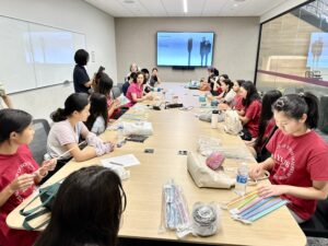 On July 28th, 2024, 18 volunteers from the Frisco & Plano AYLUS branch congregated at the Frisco Public Library from 9:00-11:00AM for instructional and practice time. Our volunteers helped each other learn the basics of knitting including the required stitches used to knit apparel fit for future donation. Many of our community’s cancer patients that have underwent chemotherapy treatments have experienced hair loss, so our volunteers have devoted their time to create hats, beanies, etc. for these patients to enjoy. Great work to all 18 volunteers who came to participate in this knitting session!