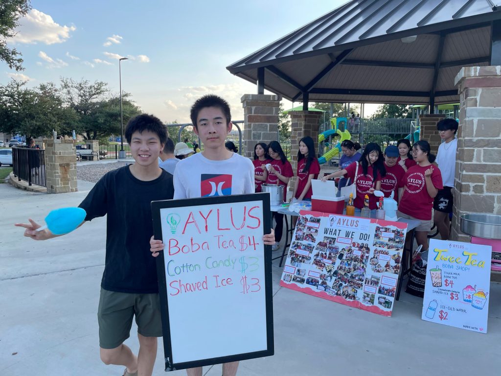 From 7:00-10:00PM, our volunteers worked diligently to set up, advertise, and clean up a three-item stand at Russel Creek Park. Volunteers cooperated to serve fresh-made boba milk tea, shaved ice, and cotton candy to help fundraise for the African Library Project. The project recognizes the importance of allowing less fortunate peoples to books and literature, and aligns with AYLUS’ mission to help our community and world. However, the project requires high fund-demands for trans-continental book shipments, so the Frisco & Plano branch has continued to work hard at their part of this impactful project.