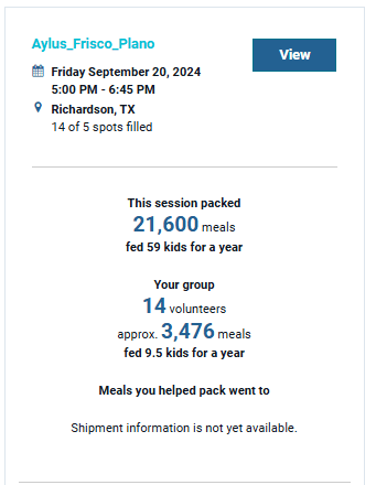 Together with total 87 volunteers, we packed 21600 meals that can feed 59 kids for a year. Averagely, Aylus group packed approximately 3476 meals that can feed 9.5 kids for a year. We are very proud of what we achieved.