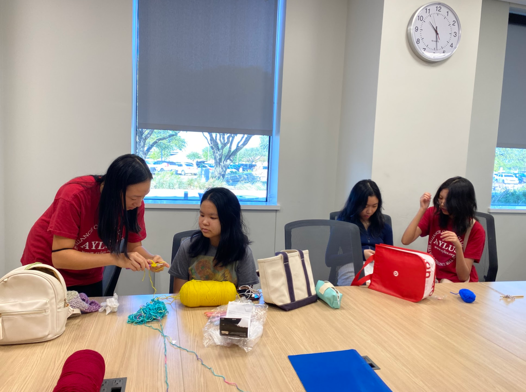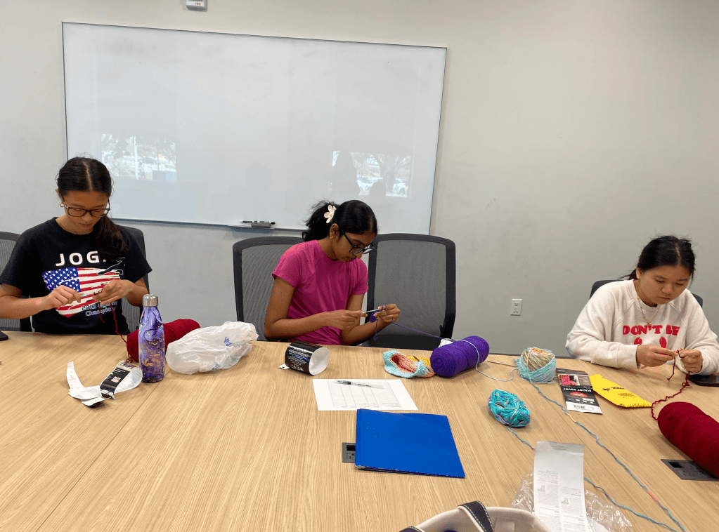 On the morning of September 22, 2024, AYLUS members gathered at Frisco Public Library for a Loops for Love crochet workshop. There, more experienced AYLUS volunteers taught other volunteers how to crochet a hat. They taught some basic crochet skills like making a magic ring, crocheting a chain, a slip stitch, and how to double crochet. Using these skills, volunteers were able to start to crochet hats for the Loops for Love Project to donate to cancer patients. Overall, this event was a success with more new volunteers being trained to help with the Loops for Love Project.