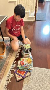After we collected PreK-4 books for our seventh African library, we sorted them into two reading levels: PreK-1st grade and 2nd-4th grade. Each of us read the books to determine their appropriate levels. We then placed the sorted books into two separate 12”x12”x12” media boxes, as required by the African Library Project. Finally, we labeled the tops of the boxes with the grade levels and the total number of books using a Sharpie.