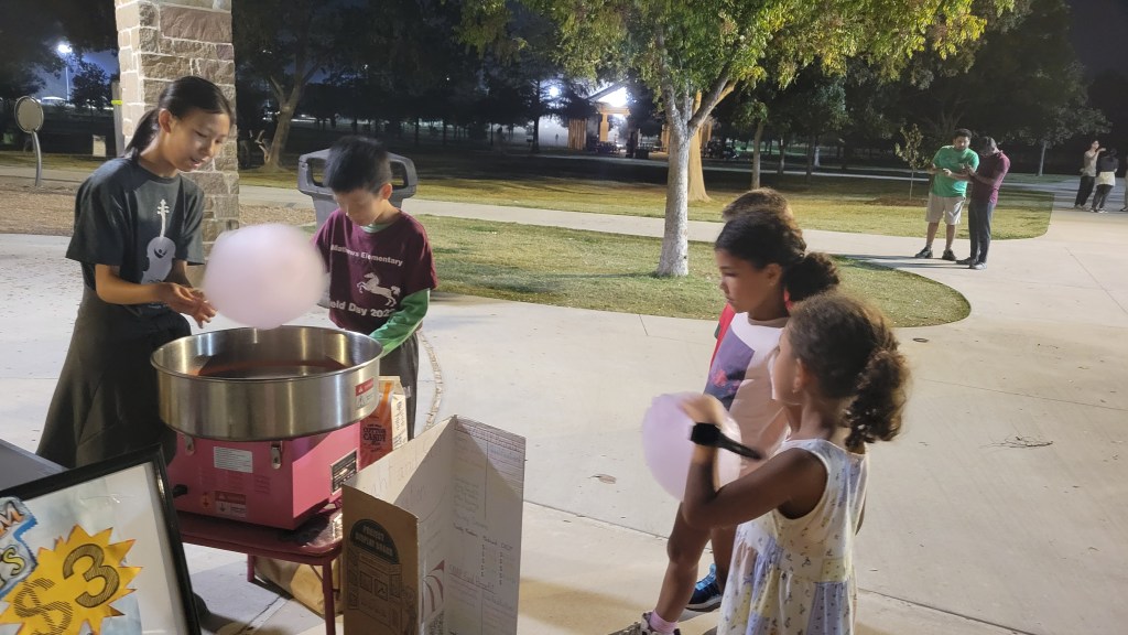 On the evening of October 26, 2024, nine members of our Frisco Plano volunteered at Russell Creek playground in Plano for a fundraising event. We set up tables and sold Boba, Floats, and Cotten Candy. We aim to raise funds to support the “Loops for Love Project,” where we provide chemo hats to people undergoing chemotherapy. We had people promote, people making boba tea, people making cotton candy, and people making ice-cream floats. We engaged our customers and promoted to people walking by. Maybe because many fall events were going on that day, there were not many people in the park. After it was completely dark there were fewer and fewer people in the park. So we wrapped up our event. Thanks to all the driven, hardworking, and passionate volunteers. The following is the list of volunteers