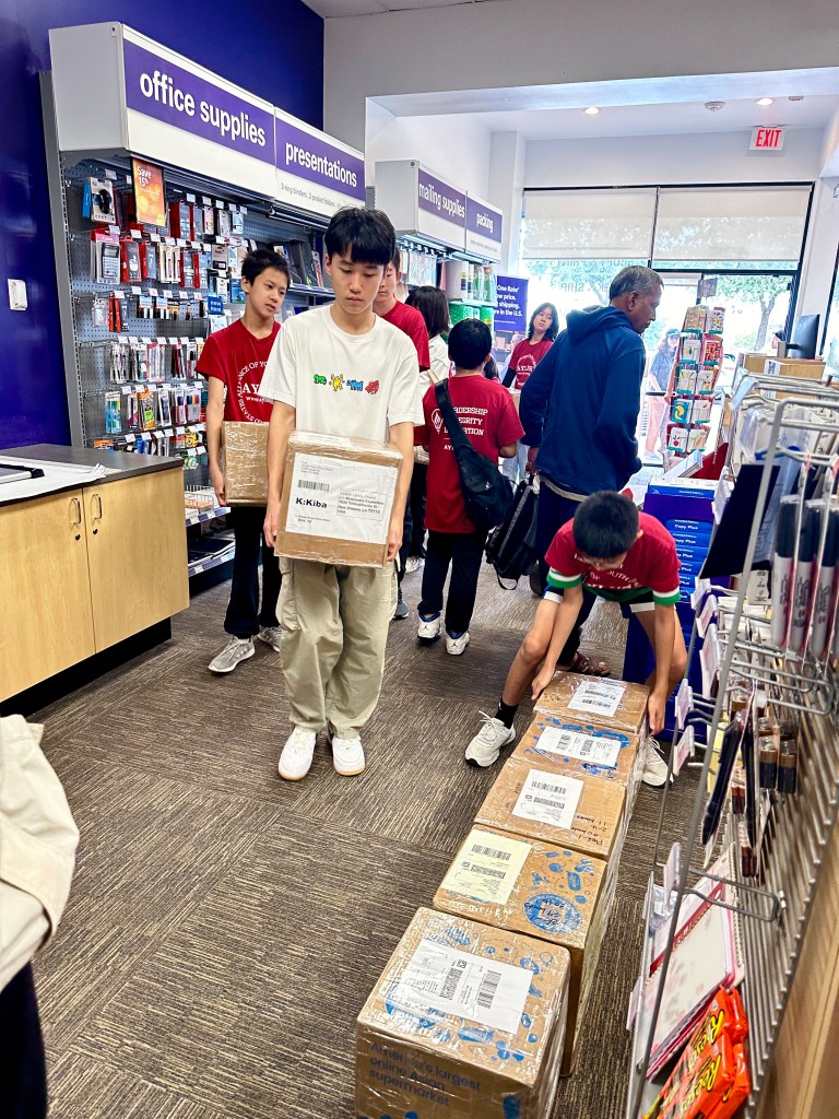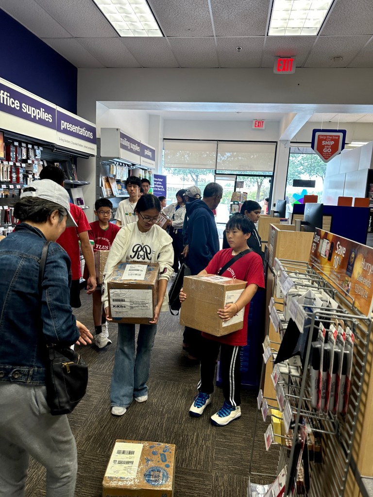 Finally, it is an exciting moment to ship our 7th African Library King Centre Maeni School Library to Kenya. We gathered at the FedEx shipping center, and each volunteer helped unload the 1,000 books in sixteen boxes. With our best wishes, the shipment will arrive in Kenya in about four months or longer, depending on the situation. Inside each box, we included our wish notes for the children of Kenya, hoping to inspire and encourage them as they read their new books.
