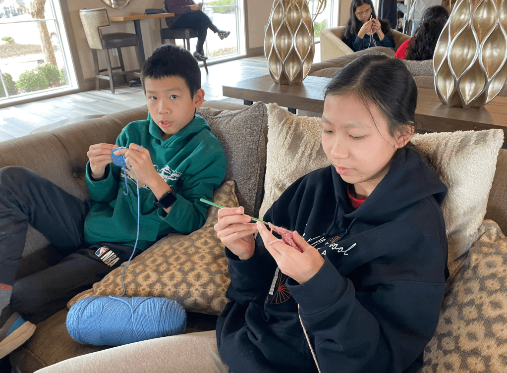 On the morning of December 22nd, 2024, AYLUS Frisco & Plano Branch volunteers gathered at the Lexington County clubhouse for a volunteer event for the Loops For Love Project. This was the last event before the hats were donated, so volunteers worked hard to finish their hats. Some new volunteers learned how to crochet hats from the older volunteers and managed to make decent progress on their own after a while. After working for some time, volunteers that had finished crocheting at least one hat helped package and label the hats for donation. Overall, great job to the volunteers!