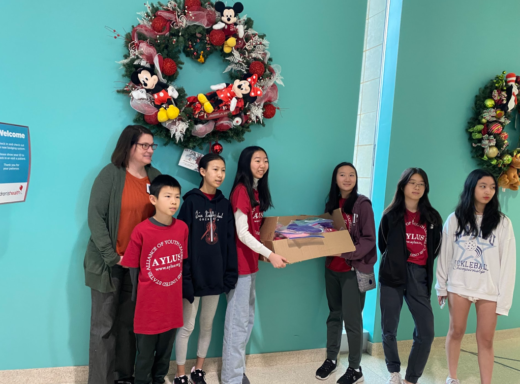 On the afternoon of December 23rd, 2024, AYLUS Frisco & Plano Branch members gathered at the Children’s Health Center in Plano to donate hats as part of the Loops For Love Project. In the Loops For Love Project, volunteers crochet or knit chemo hats or small items to then be donated to children’s hospitals for the cancer patients in need. As of December 23rd, hundreds of chemo hats had been made by AYLUS volunteers. Before the event, volunteers got into contact with the hospital staff to schedule an appointment to donate the hats. Volunteers then met up outside the hospital and donated the hats. We look forward to donating even more hats to children’s hospitals! Great work volunteers!