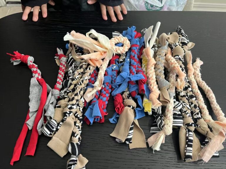 crafting session. Using various old, clean, pure cotton clothes, we cut them into strips