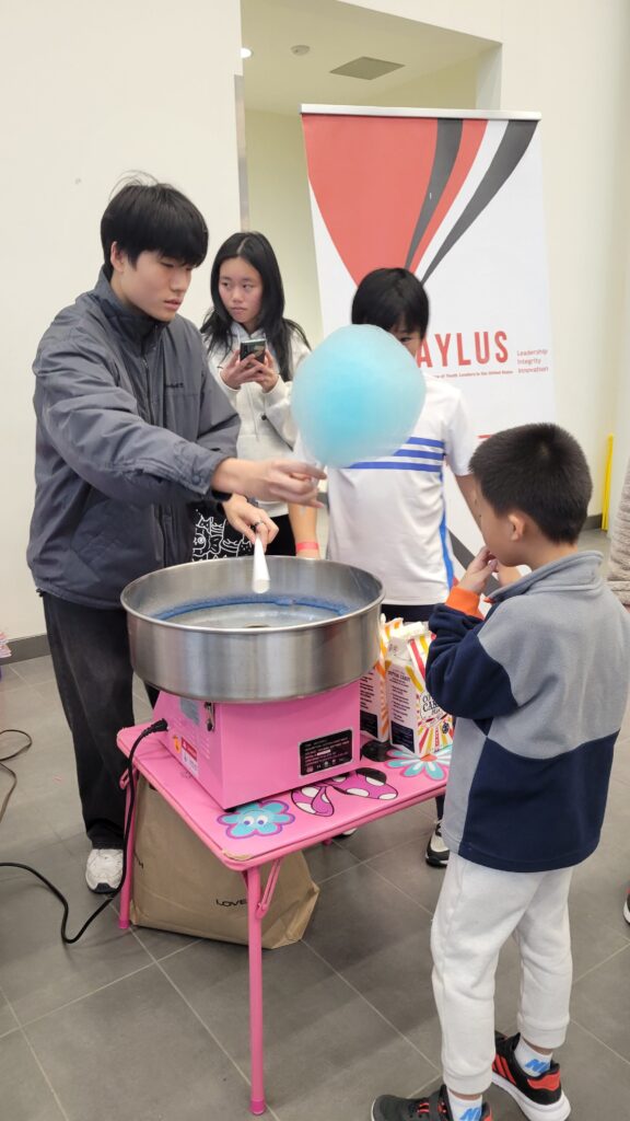 On January 26th, 2025 we volunteered at Mckinney High School Performing Art Center for the Chinese New Year celebration, raising money for the Children’s Hospital in Plano. Most of the people there were wearing traditional articles of clothing or dressed up for their performances. Their dresses were very pretty. We sold cotton candy, cute crochet items, our hand-made bracelets, and balloon animals. Lots of people bought cotton candy for their kids. The strawberry flavor is very popular. There was even a line waiting for the cotton candy. Some members from our branch also performed dragon dances to the beat of the big drum. People were happy and hopeful for the New Year!