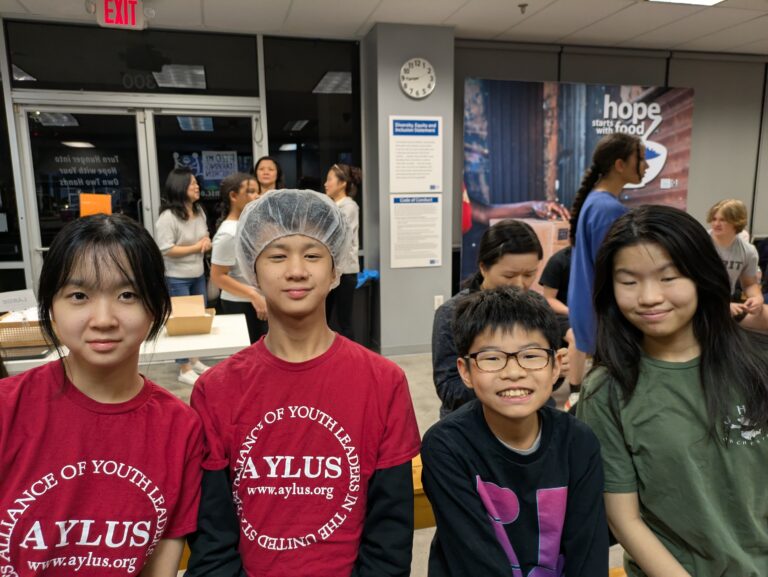 On Saturday March 1st, 2025, four members of AYLUS and one parent participated in a Feed My Starving Children (FMSC) packing session. The experience was relatively straightforward as FMSC had already prepared everything we needed, so our main task was simply to show up and follow instructions. We started the session in a large group alongside volunteers from other organizations, each of us eager to get started. A staff member briefly explained the rules and guidelines for the session, ensuring everyone was clear on the process. Afterward, we were divided into smaller groups and sent to our respective packing stations.