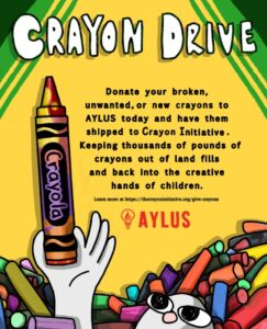 In Spring 2025, AYLUS members continued the community drive about collecting and donating crayons. AYLUS members wanted to collect these crayons to ship to Crayon Initiative to help keep the crayons out of landfills and back to the creative hands of children. During the time, community members got in contact about when and where the crayons could be picked up. After the community members scheduled a pickup date, AYLUS members picked up about total 22lbs crayons from community members.