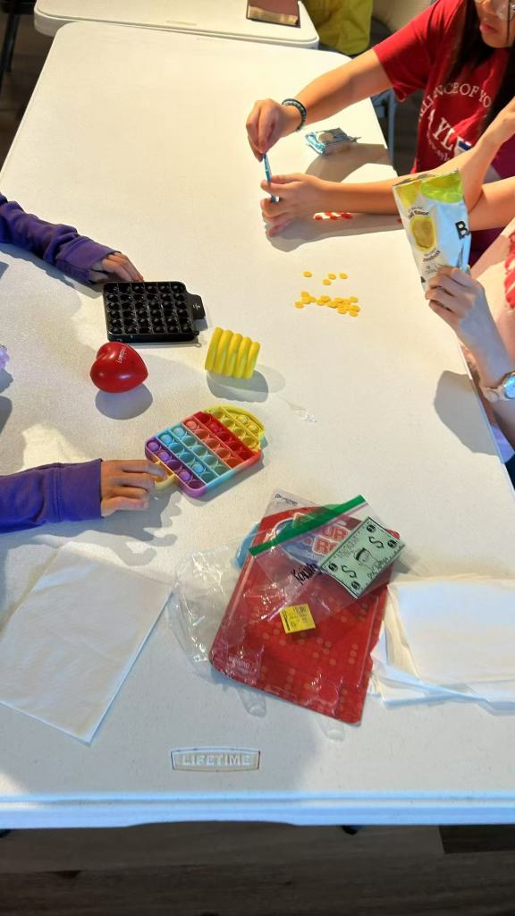 On May 3rd, four AYLUS volunteers came to help out with the Agape Special Needs program. Since there were less volunteers than usual, volunteers each took on about 2-4 special needs friends this time. The program seeks to help teach them about Jesus with lessons involving video explanations of Bible stories, images, verses, and worship songs to dance to. We had a lot of fun doing the dances! Also, there were songs in English as well as Chinese to accommodate those who had Chinese as their first language. Then, after all of that is finished, there were a series of games we played with the special needs friends. First, though, they could use (fake) money they collected throughout the day to purchase snacks, which helped teach them about financial use. First in the games was a linked-arms hula-hoop game, to which you would move a hula-hoop between people without letting go of their hands. Next, there was a backward throwing game, where a volunteer would either throw crumpled paper balls with the special needs friend as the catcher, or be the ones to catch them with the special needs friend as the thrower—then, they would switch! Lastly, was an egg balancing game, where the special needs friends would balance an egg on a spoon and walk in a circle around four chairs in a relay race, while volunteers cheered them on. Though less volunteers came this time, we still thoroughly enjoyed the experience, and we’re sure that the special needs kids did, too!