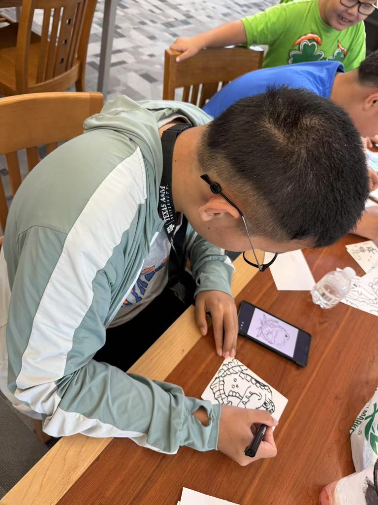 On Aug 3rd, 2025, Alex and Scott, two super dedicated volunteers, met at the John and Judy Gay Library. Got to work drawing postcards for the children at the children’s hospital. They also spent hours discussing how to draw and sell the book notes for the next fundraiser program. They draw fun and cute characters for the children at the children’s hospital.