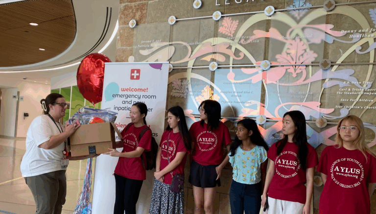 On the afternoon of September 2nd, 2025, AYLUS Frisco and Plano Branch members gathered at Plano Children’s Health to host a donation event for the Loops For Love project. Prior to the event, 60 hats were crocheted by AYLUS volunteers during Loops For Love events in preparation for the donation. At the event, volunteers donated those 60 hats that they had crocheted to the Children’s hospital, making this event a big step forward for the Loops For Love project. Great job volunteers!