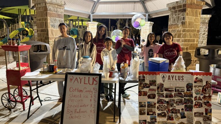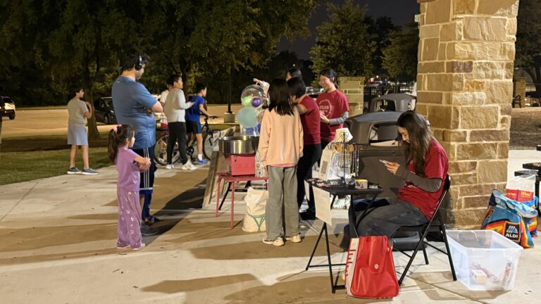 On October 26th, seven AYLUS Volunteers set up their stand at Russell Creek Park to fundraise for the Plano Children’s Medical Center. This would be their last at Russell Creek for the year; winter was going to come soon, as evidenced by the rainstorm the day prior. As expected, that evening was chilly, and less people decided to come to the park. Even so, those who came could enjoy the cotton candy, shaved ice, popcorn, lemonade, and bottled water we provided. Jewelry was sold on the side as well, as well as the big balloons (which one would assume to just be decoration, but they were on sale too). Dividing the work up amongst the group, the volunteers made sure to attend to the needs of the customers from 6:30 PM until the event concluded at 8:30 PM. Many customers bought several things at a time—two popcorns and a lemonade for example. In fact, popcorn was a surprisingly popular item that day. One of the balloons was sold, too! Newer volunteers also learned how to make cotton candy, which will be useful in the future when we return to Russell Creek. The volunteers have worked hard fundraising this year, and have raised thousands for the hospital. What an achievement! Amazing job, volunteers, for the good work you’ve done at Russell Creek park—both on the 26th, and this whole year.